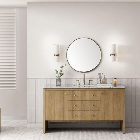 CBMmartソリッドウッド自立型シングルバスバニティライトオーク