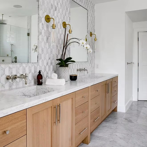 CBMmart防水合板カスタムホワイトオークメープルダブルシンク洗面床自立型パウダールームマスターバスルームバニティ
