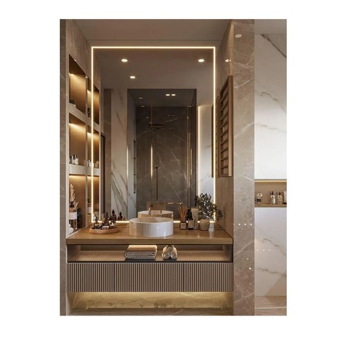 CBMMART木製木目メラミンベニヤバスルームキャビネットLedミラーモダンバスルームバニティ